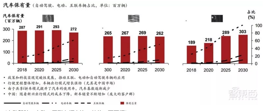 ▲汽车保有量(自动驾驶、电动、互联车辆占比,单位:百万辆)
