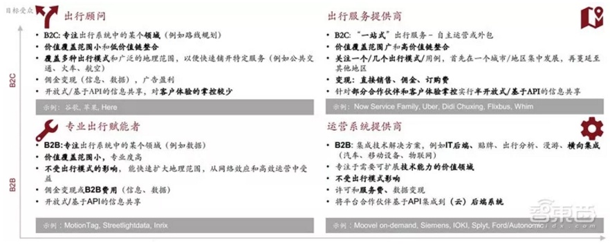 但对于出行顾问、出行服务提供商、专业出行赋能者和运行系统提供商这几种不同的出行生态系统玩家来说,他们所面临的机遇也各不相同。