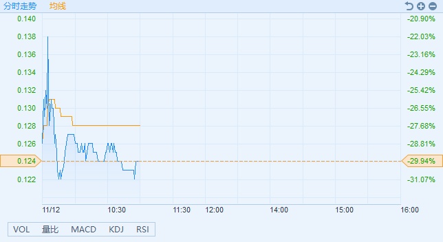 智通财经APP获悉,此前建议供股筹资,截至10时55分,有线宽频(01097)跌29.94%,报0.124港元,最多跌逾31%。