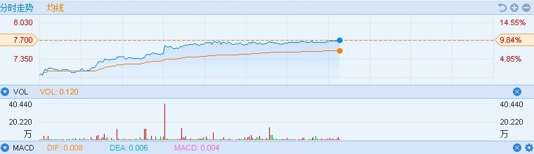 智通财经APP获悉,金风科技(02208)午后股价继续走高,截至发稿,截至11时22分,涨9.84%,报7.70港元,成交额3772万港元。