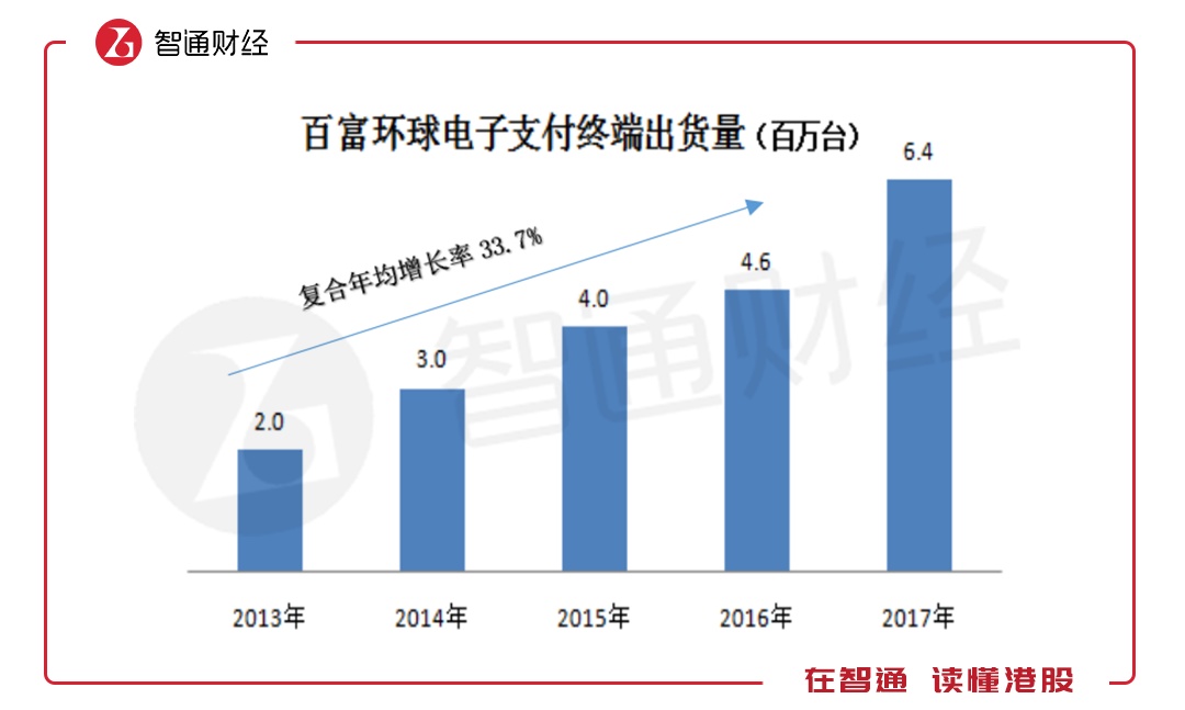 百富环球目前已是全球最大的电子支付终端解决方案供应商之一,致力开发和销售电子支付终端及相关支付软件应用。据全球权威咨询机构Nilson报告,以2017全年支付终端的出货量计算,百富位居全球第五。