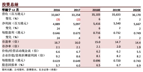 流动通讯及宽频市场价格战结束。我们发现香港电讯受流动通讯市场价格战的影响,流动通讯用户数有所减少,而其宽频用户数则保持稳定。然而,价格战结束预计将对香港电讯产生积极影响。在手机销售的推动下,我们预计其2018年收入将增长 5.5%,2019年及2020年收入将增长1.5%。