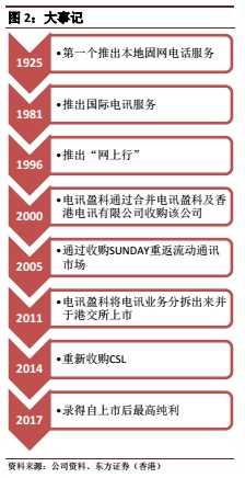香港电讯-SS 成立时间可追溯至1925年。香港电讯作为香港领先的电讯服务供应商已有逾90年的历史。目前,其为香港固网市场、流动通讯市场、宽频市场的市场领导者。2011年电讯盈科将电讯业务分拆出来设立香港电讯信托,其同年于港交所上市。