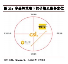 香港电讯就其流动通讯业务推出多品牌策略香港电讯于 2014 年 5 月重新收购 CSL 后推出多品牌策略。香港电讯旗下品牌包括1010、CSL 及 Sun Mobile。在多品牌策略推动下,香港电讯业务得以全面覆盖香港市场。