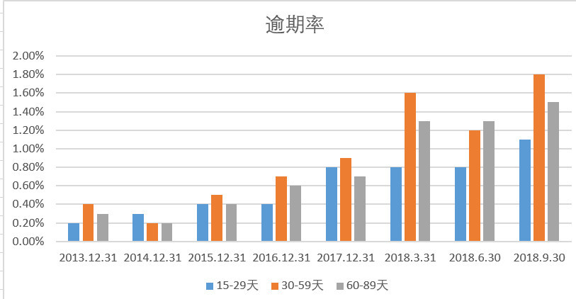 针对外界最为关乎的坏账率和预期方面,宜人贷称,截至2018年9月30日,逾期15-29天、30-59天和60-89天的借款的逾期率分别为1.1%、1.8%和1.5% ,相比之下截至2018年6月30日分别为0.8%、1.2%和1.3%。