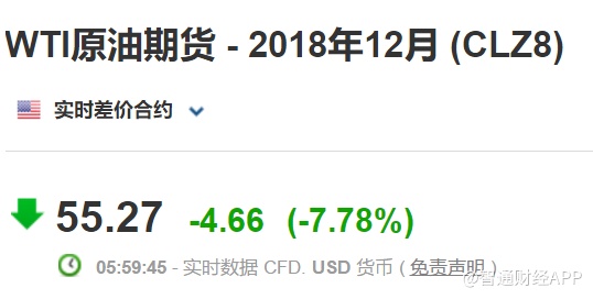 智通财经APP获悉,因对全球需求减弱和供应过剩的担忧持续,原油期货价格周二收盘暴跌。美油暴跌7.78%,报55.27美元,创下2017年11月16日以来的最低收盘价,同时也创下三年多以来的最大单日百分比跌幅。这已是美油连续第12个交易日收盘下跌,基于回溯至1983年WTI期货合约开始交易以来的数据,这创下了新的连跌历史纪录。