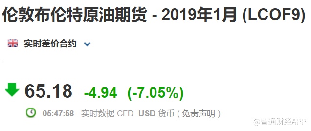 与此同时,作为国际价格基准的布油周二大跌逾7%,报收于65.18美元。与此前在10月份触及的高点相比累跌25%左右,正式滑入了熊市区域。