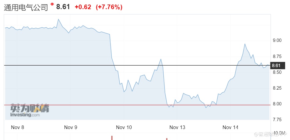 智通财经APP获悉,通用电气(GE.US)昨日宣布,将出售油田服务公司贝克休斯的股份,持股比例从62.5%降至略高于50%,以换来该集团急需的现金。消息传出,其股价周二大涨7.76%,报8.61美元,创下2015年4月以来最大单日涨幅。此前一天,该公司股价自金融危机以来首次跌破每股8美元大关。