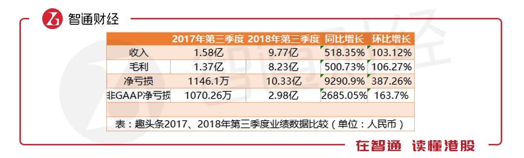 为了能更准确的反映公司业绩情况,趣头条做了非美国通用会计准则(非GAAP)处理,在此准则下,2018年第三季度的实际净亏损为2.98亿元,同比增长2685.05%,环比增长163.7%。