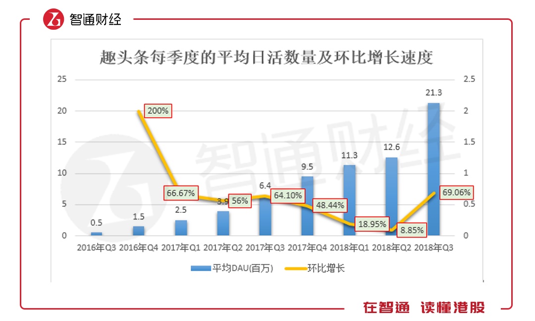 通过数据的对比,或许更为直观些。2018年第二季度时,趣头条平均日活数量环比增长仅8.85%,这也是市场较为担心的,用户增量逐渐放缓,天花板显现。但在三季度,趣头条的平均日活数量环比增速猛涨至69.06%,看似稳定了市场信心,但这背后都是公司用钱砸出来的。
