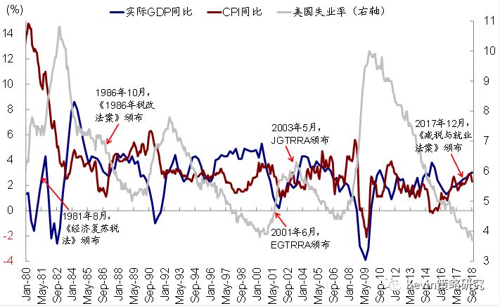 通过对比历次美股回调和经济进入衰退的关系,我们注意到,历次经济进入衰退都进本上伴随着市场下跌,不过,这一结论反过来却不成立,即历次下跌不意味着必然有经济衰退,典型的如1987年(图表26)。以中位数计,美股大跌平均领先经济衰退8个月,但由于原因的差异,每次市场大跌领先衰退的时间(1~13个月)及跌幅(11.7%~56.8%)差异都很大。因此无法作为经济即将陷入衰退的可靠依据。