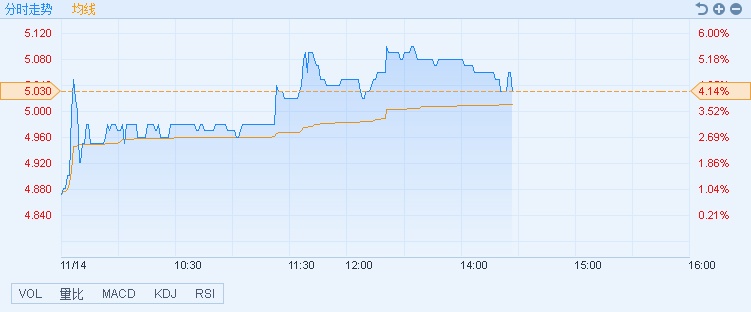 智通财经APP获悉,安徽皖通高速公路(00995)将纳入MSCI中国小型股指数,股价造好,截至14时26分,涨4.14%,报价5.03港元,成交额2187.08万。