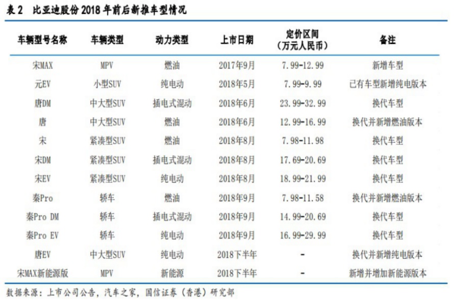 公司重磅车型系列秦 Pro 在 9 月 20 日刚刚上市,并且新增燃油版本。与 6 月份完成换代的唐系列车型一样,秦 Pro 系列车型较上一代车型有了脱胎换股的提升,预计后续产量提升之后,该车型将成为带动公司 11-12 月销量继续高增的另一强劲推动力。