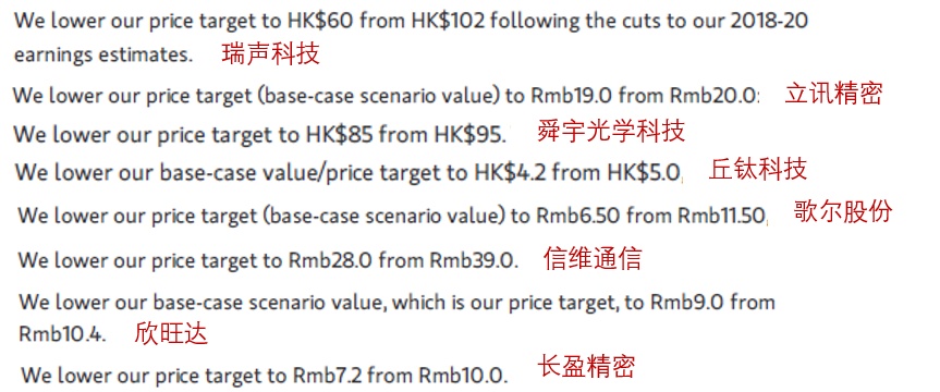 先来个一句话概括:智能手机产业链比较惨,估值已经打回到前移动互联网时代的水平,所有公司目标价全线下调。