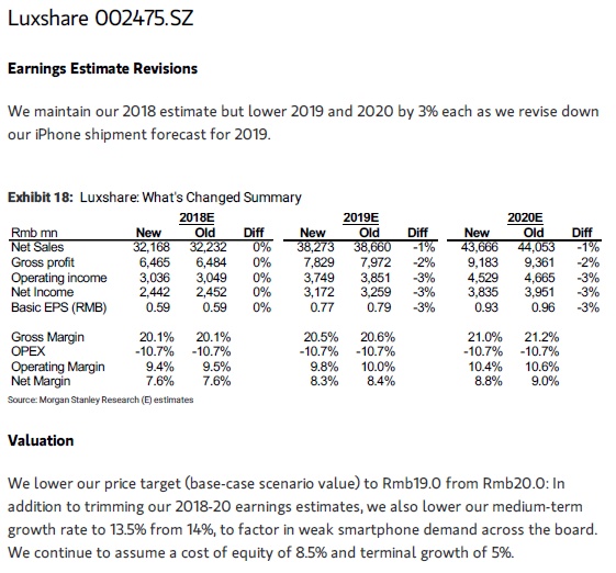小编遇见,还是要发挥想象力,毕竟在这个行情下,我们不能指望大摩这样的机构旗帜鲜明地给你拍胸脯:毕竟他们对文中夸了不少的、有苹果撑腰的立讯精密,一样下调了目标价。