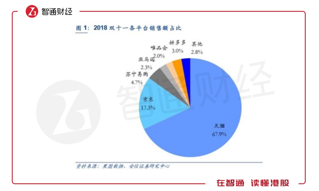 虽然部分电商平台没有公布具体成交额,但已有券商统计出数据。2018年的双十一,全网实现销售额3143.2亿元,同比增长23.75%,其中天猫销售份额67.9%,京东销售份额17.3%,苏宁易购销售份额4.7%,而拼多多销售份额3%。今年双十一的份额分布和去年同期差距不大。