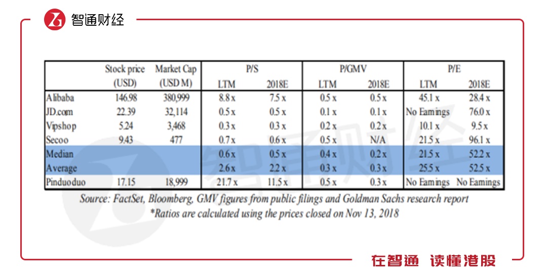 沽空机构Blue Orca列出了阿里、京东、唯品会及拼多多等电商在PS、PE及P/GMV上的对比。以PS估值看,以阿里2018年预测PS的7.5倍的估值算,拼多多价值仅7.1美元,相对于上一交易日收盘跌59%。Blue Orca同样列出了P/GMV的估值方法,测算拼多多价值较前一日收盘还可跌53.1%。