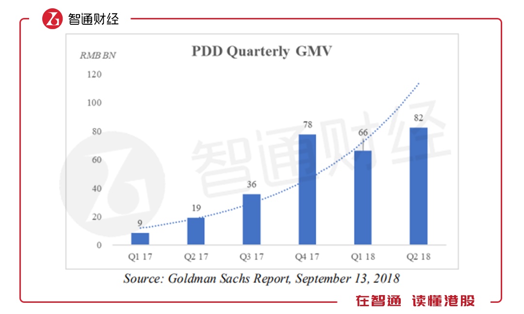 而且,拼多多未来的成长可能放缓,拼多多在2018年Q2的GMV为820亿元,环比增长24.24%,而Q1的GMV环比则下跌达15%,相对于2017年的Q4和Q3环比增长的117%和89.5%明显放缓了很多。阿里在2016年GMV突破3.56万亿元的情况下,在2017年仍实现增长29.9%,突破4.6万亿元。拼多多规模小,若GMV增长放缓,收入如何快速成长呢!