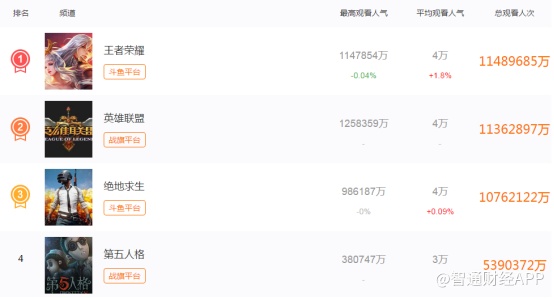 斗鱼目前已经从用户流量及渗透率上占据了TOP1的地位,而虎牙则不仅在DAU数据出现一定下滑,还面临着众多同行的挑战,直播人气排行正好能说明这一点。