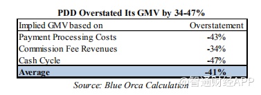实际上,我们认为至少有三个数据点表明PDD的真实GMV比报告的数字低34-47%。