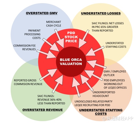 Blue Orca认为这些证据表明拼多多和乐其之间的关联方交易仍在继续,且未被披露。Blue Orca怀疑该公司正秘密承担拼多多的部分人力成本。这本应出现在拼多多的SEC财务报表上,这将增加其亏损,并削弱其运营效率。