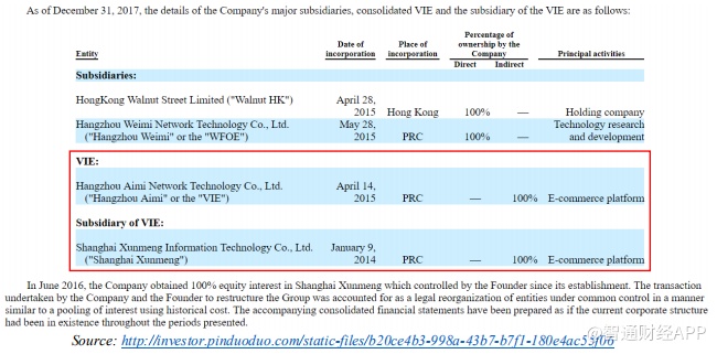 截至2017年12月31日,PDD仅有两个这样的VIE:杭州爱美网络科技有限公司(“杭州爱美”)和上海讯盟信息技术有限公司(“上海寻梦”)