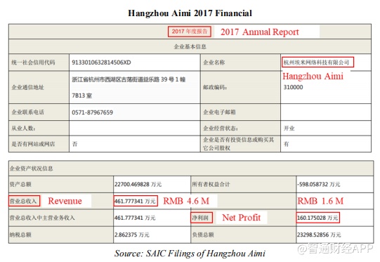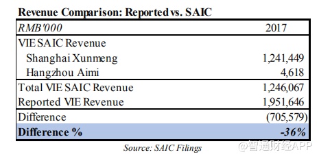 PDD的招股说明书指出2017年的公司间收入仅为人民币2.076亿元。假设此披露属实,那么可能是工商局提交的VIC申请包括此类公司间收入。如果我们减去公布的公司间收入,那么在工商局文件中显示的上海迅盟和杭州爱美的收入比PDD在其SEC文件中报告的综合收入低40%。