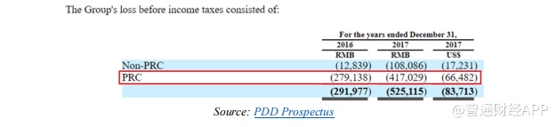 PDD在其招股说明书中报告,2017年中国的净亏损仅为人民币4.17亿元。