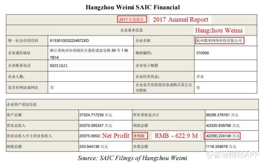 如果我们合并VIE实体及其母公司(外商独资企业杭州威米)的亏损,SAIC的文件显示,PDD在2017年报告的中国净亏损为人民币6.89亿元,比PDD的SEC文件中报告的高出65%。