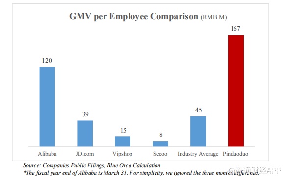 PDD不仅是GMV最快达到1,000亿元的公司,且据称它的运营效率极高,人员配备精简。