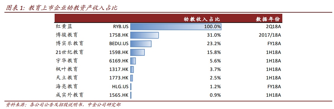 新华社 11 月 15 日受权发布《中共中央国务院关于学前教育深化改革规范发展的若干意见》(“意见”)。相信意见将有利于学前教育的规范发展。中金公司对港美股中教育上市企业幼教资产的收入占比进行了统计,并对“意见”进行了点评。