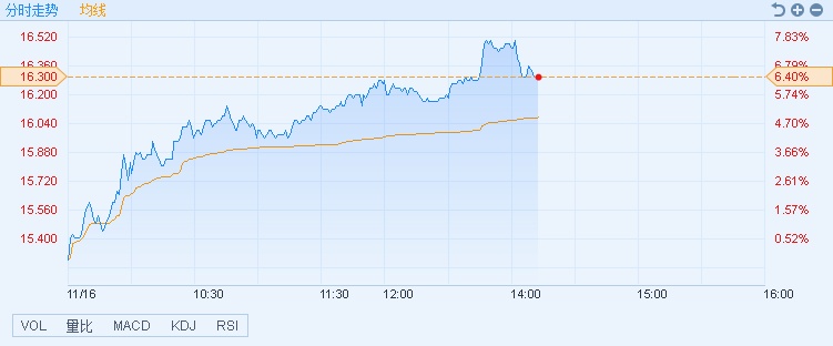 智通财经APP获悉,传完成第一个5G呼叫,明年上半年推出5G手机,中兴通讯(00763)股价造好。截至14时12分,涨6.27%,报价16.28港元,成交额4.35亿。