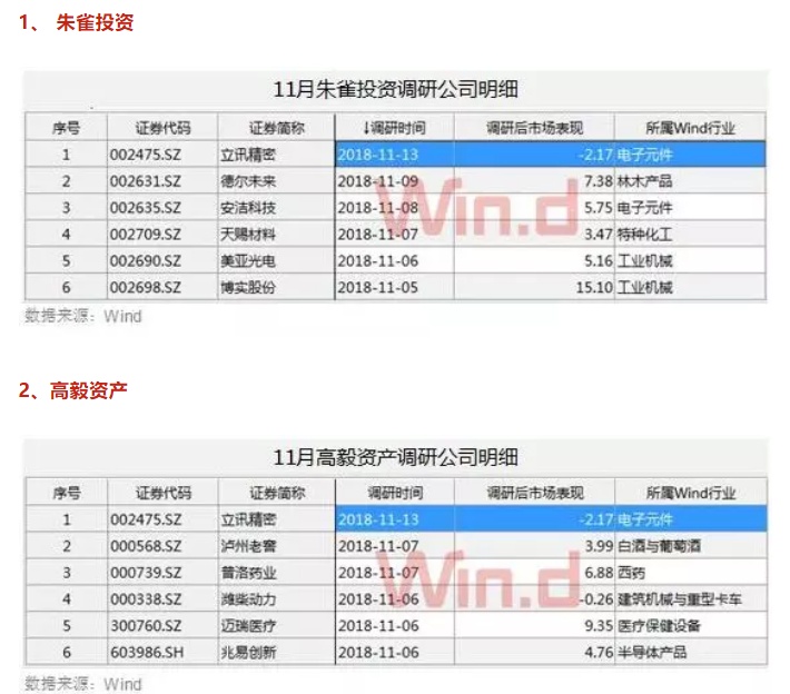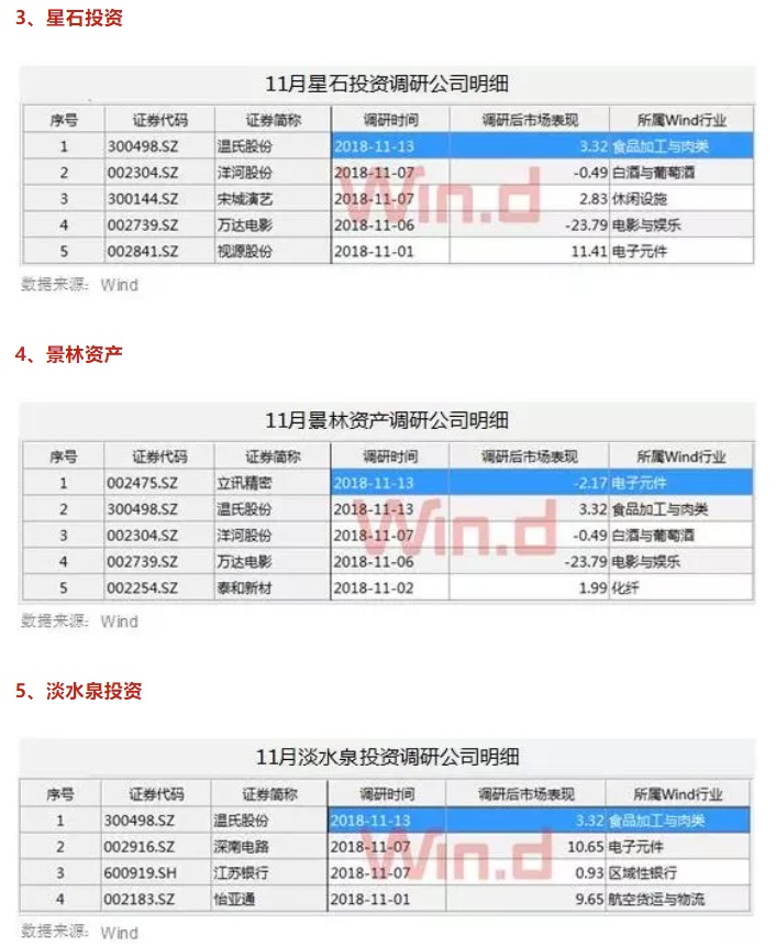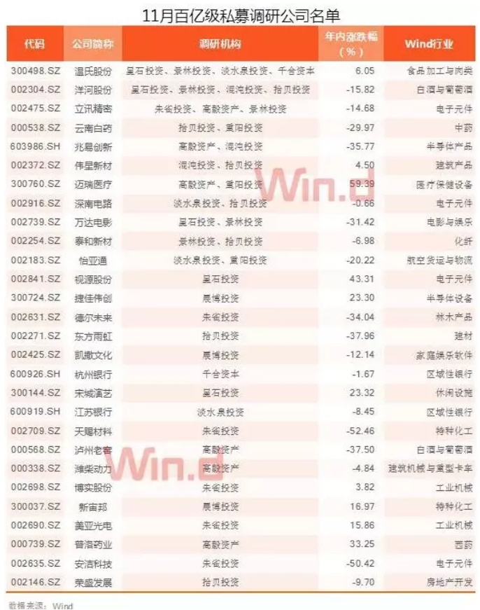 以下为11月份至今百亿级私募详细调研股名单:
