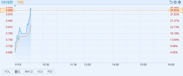智通财经APP获悉,于11月16日,凤凰卫视(02008)附属与阿里巴巴开展合作互联网技术,早盘股价造好,截至10时04分,涨34.85%,报价0.89港元,成交额549.87万。