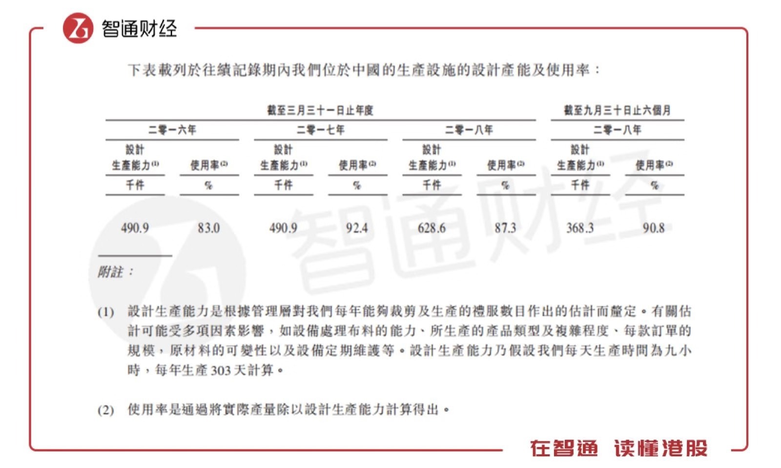 然而,受制于现有产能已经趋于饱和,嘉艺控股想要扩张份额并非易事。公司招股书显示,2018财年,公司设计生产能力62.86万件,产能利用率达到87.3%,截至2019年财年9月30日止6个月,公司的产能利用率达到90.8%,公司要想在现有基础上通过扩大产能抢占市场难度不小。