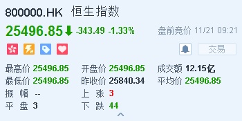 智通财经APP获悉,美股继续大跌,国际油价暴跌,外围风险犹存。恒生指数开盘跌1.33%或343.49点,报25496.85点。国企指数跌1.43%,报10316.81点。红筹指数跌1.35%,报4220.93点。大市盘前成交12.15亿港元。