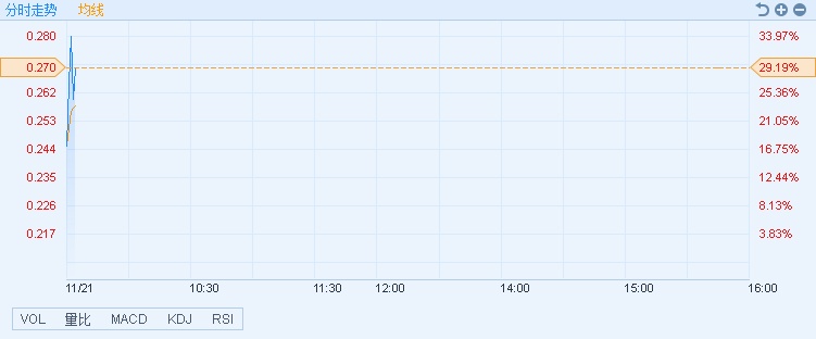 智通财经APP获悉,美亚控股(01116)停牌近七年,董事会宣布,已于2018年11月20日符合所有复牌条件。今日复牌,股价造好,截至9时33分,涨29.19%,报价0.27港元,成交额538.18万。