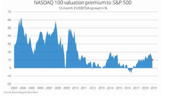 盛宝银行表示,纳斯达克100指数和标准普尔500指数之间的估值溢价正在迅速缩水,之前只要经济增长预期下降,也会出现这种情况。2015-2016年,2010-2013年,2008年,2004-05年就明显出现了这种现象。纳斯达克100指数的下一个目标位可能在6250点左右,或较目前再下跌约2.9%。