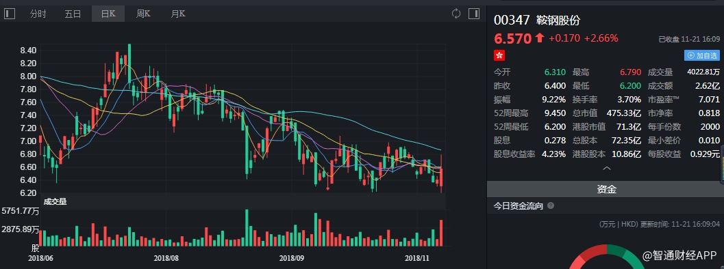 截至今日收盘,鞍钢股份(00347)报6.57港元,涨2.66%。