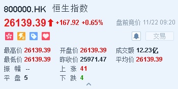 智通财经APP获悉,恒生指数开盘涨0.65%,报26139.39点。国企指数涨0.39%,报10526.58点。红筹指数涨0.16%,报4272.91点。大市盘前成交12.23亿港元。