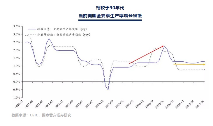 后金融危机时代美国全要素生产率的提升极为缓慢。
