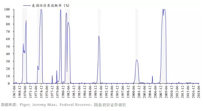 首先从产出缺口预期曲线来看,2019年美国产出缺口预期仍为正,而美联储公布的经济衰退概率也显示衰退将是小概率事件(衰退概率<0.5%)。