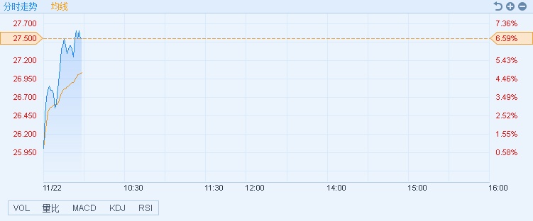 智通财经APP获悉,维他奶国际(00345)昨日午间公布中期业绩,中期股东应占利润同比增长30%至5.18亿港元,超市场预期。早盘股价涨势延续,截至9时56分,涨6.59%,报价27.5港元,成交额3661.58万。