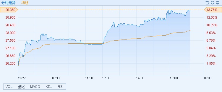 智通财经APP获悉,维他奶国际(00345)昨日公布中期业绩,超市场预期,并获星展上调评级及目标价,午后涨幅扩大,截至15时35分,涨13.76%,报价29.35港元,成交额2.04亿。