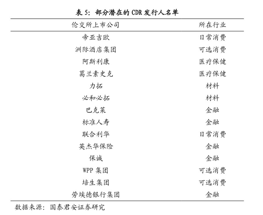 国泰君安也筛选出14个伦交所部分潜在的CDR发行人: