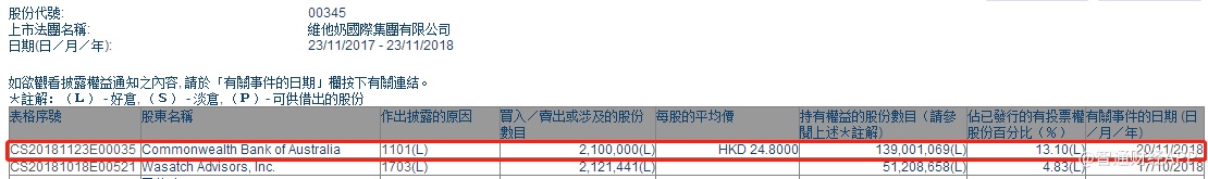 智通财经APP获悉,根据联交所资料显示,澳洲联邦银行于11月20日增持维他奶国际(00345)210万股,每股作价24.80港元,总值5208万港元,最新持股量增至13.10%。