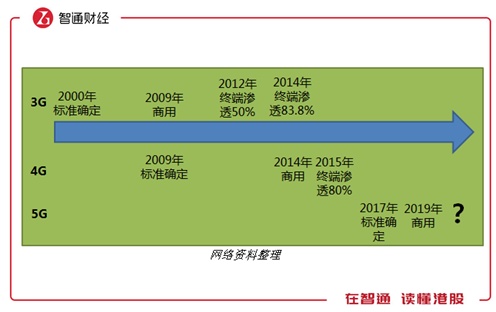除了市场容量巨大,技术更新的进程也在不断加快,由此带来的市场额度的放量也在加快。如果我们看一下3G、4G的发展历程,就可以明显感受到。