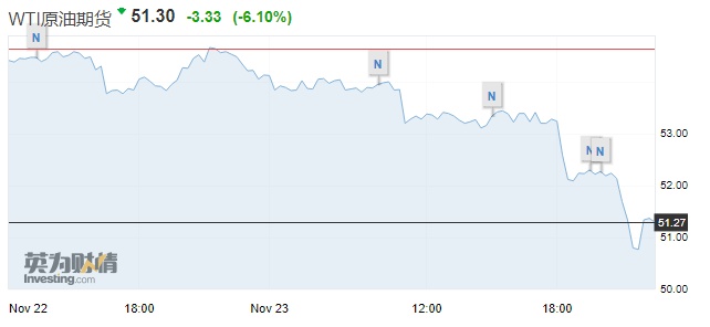 智通财经APP获悉,11月23日,国际油价经历大幅下跌,夜间跌幅进一步扩大。WTI原油期货曾一度跌逾7%。