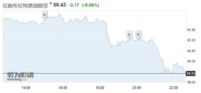 截至发稿,WTI原油期货跌6.1%,报51.3。布伦特原油报59.43,跌逾5%,两者均创2017年10月以来新低。