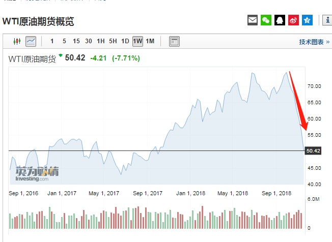11月以来,油价已连跌七周,跌幅累计超过20%;油价可能创2014年底以来最大单月跌幅。